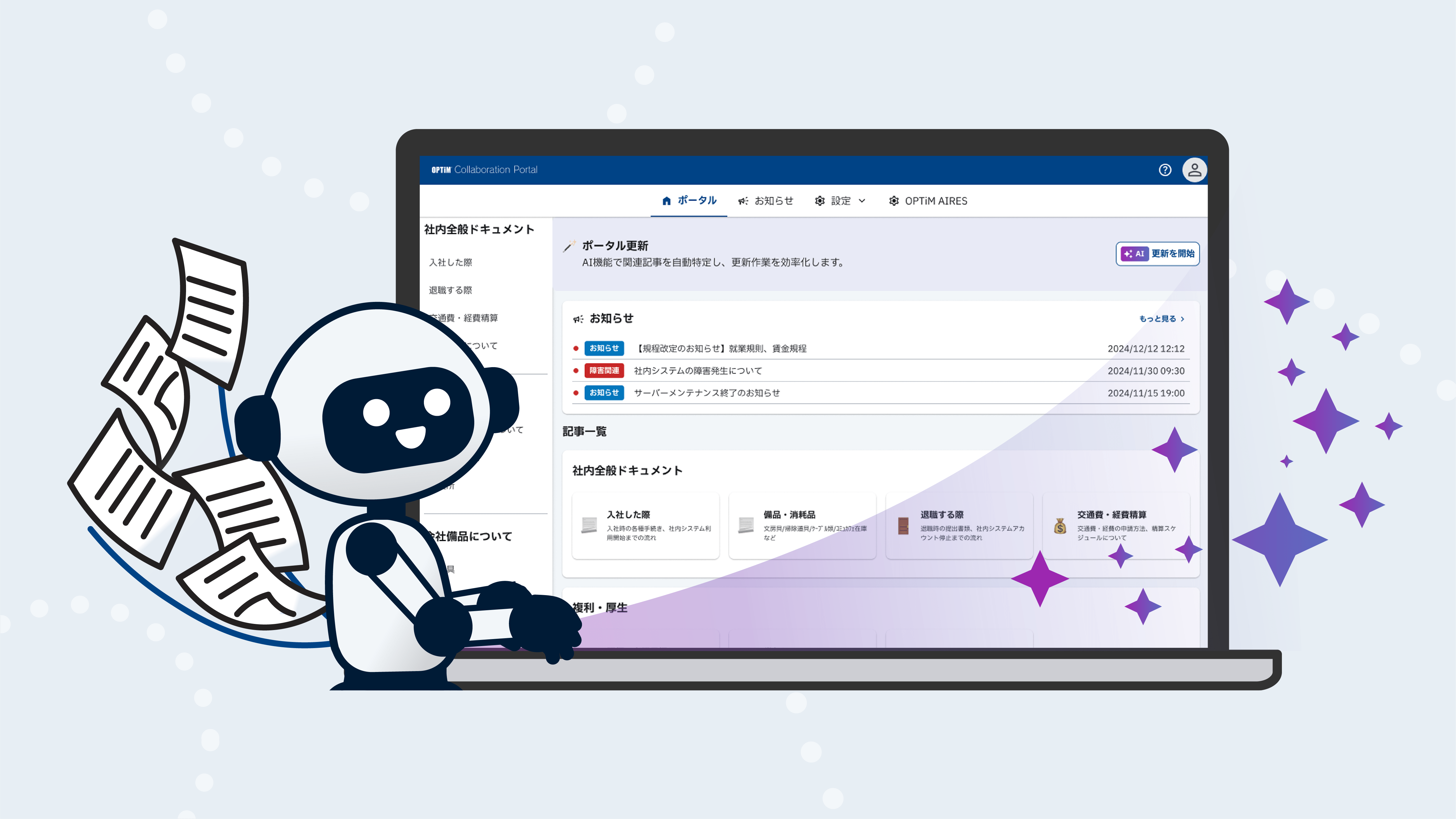 ドキュメントをアップロードするだけで生成AIが自動的に記事を分割・整理し、ポータル化するサービスです。