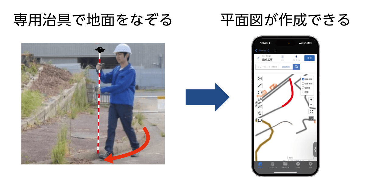 手軽にリアルタイムで平面図又は横断面図等の図面を作成(プログラム、方法、情報処理装置、システム)