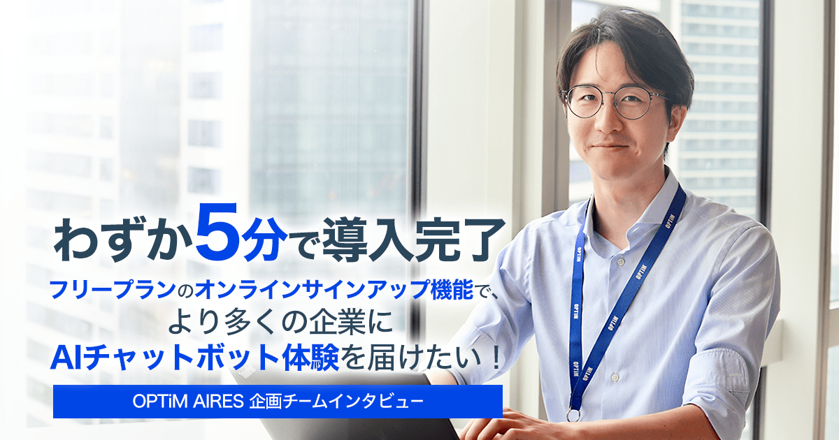 わずか5分で導入完了――フリープランのオンラインサインアップ機能で、より多くの企業にAIチャットボット体験を届けたい!【OPTiM AIRES企画チームインタビュー】