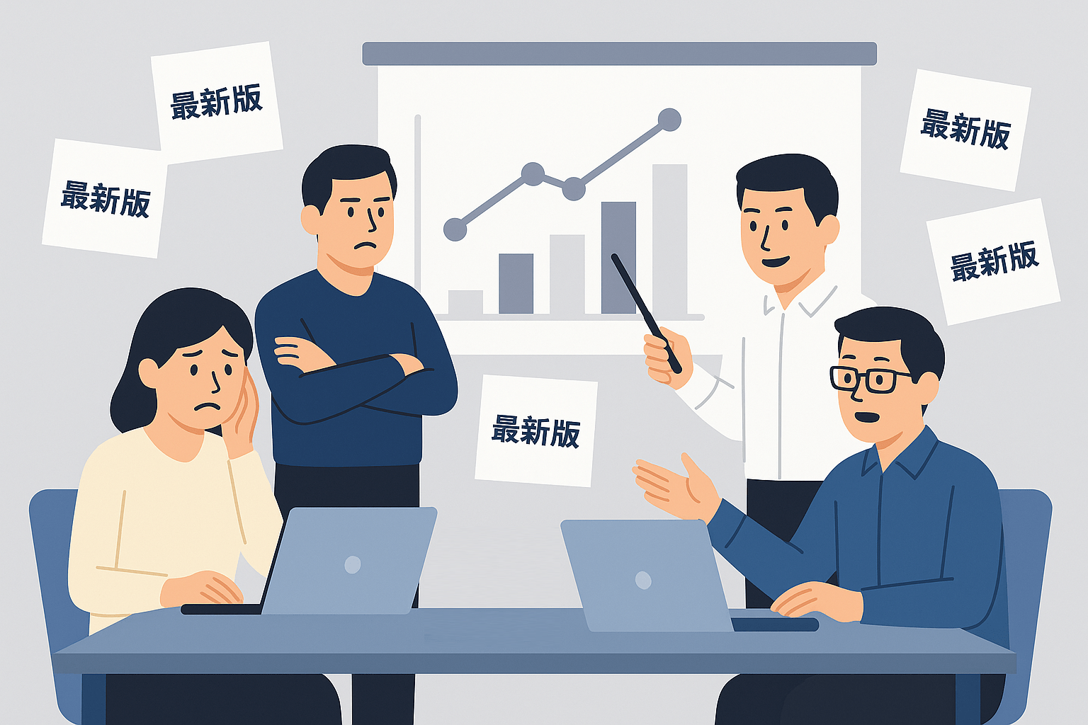 製造業のあるチームでは、月次報告書を複数人で編集しながら共有フォルダで管理していました。ところが、“最新版”と名付けられたファイルが複数存在し、どれが正しいものか判断できない状態に。