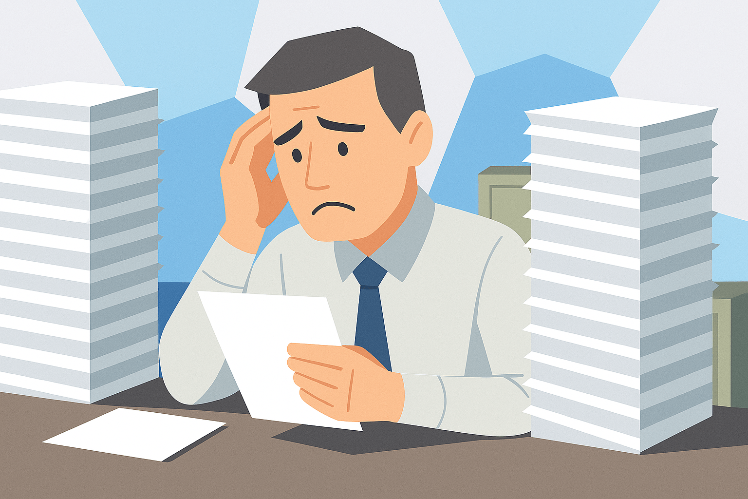 急な監査対応で特定の稟議書を探すことになり、キャビネットから探し出すのに1時間以上かかる事態になってしまいました。このような状況は、特別な例ではなく、多くの企業で起こりうる「文書管理のつまずき」です。「あるある」と思った方も多いのではないでしょうか。