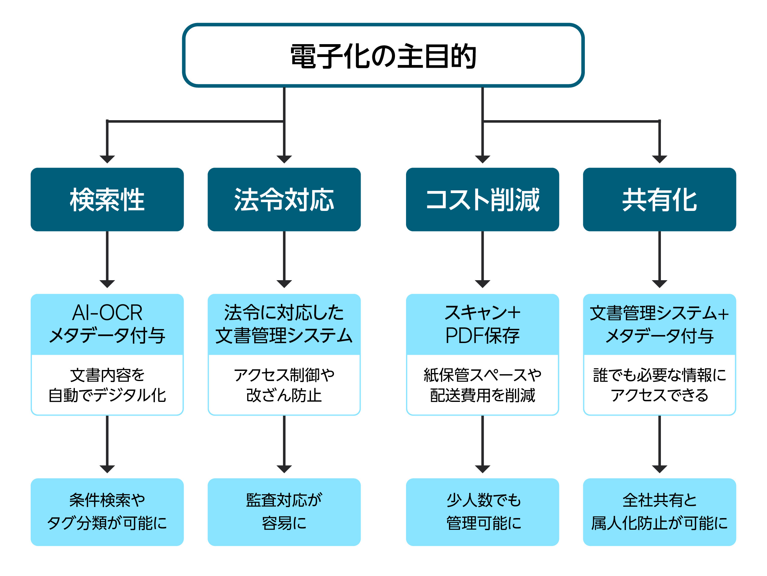 • 電子化の目的を「保管」だけでなく「活用」まで含めて設定する