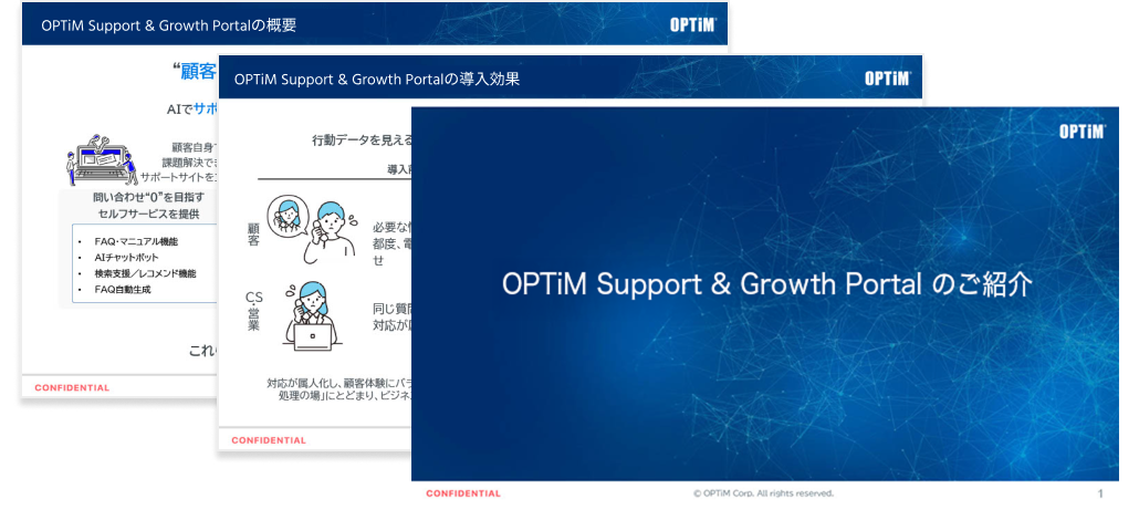 オプティムの「Support & Growth Portal」は、FAQ・Webマニュアル・AIチャットボット・お問い合わせ管理・ポータル構築をオールインワンで提供する、AIカスタマーポータルツールです。