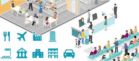 店舗や施設内に設置された監視カメラを活用して、顧客の行動を分析します。来店者情報を取得しマーケティングに活用、混雑の解消、レイアウトの最適化など店舗運営のためにご利用いただけます。